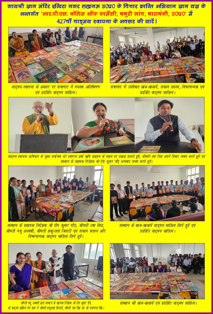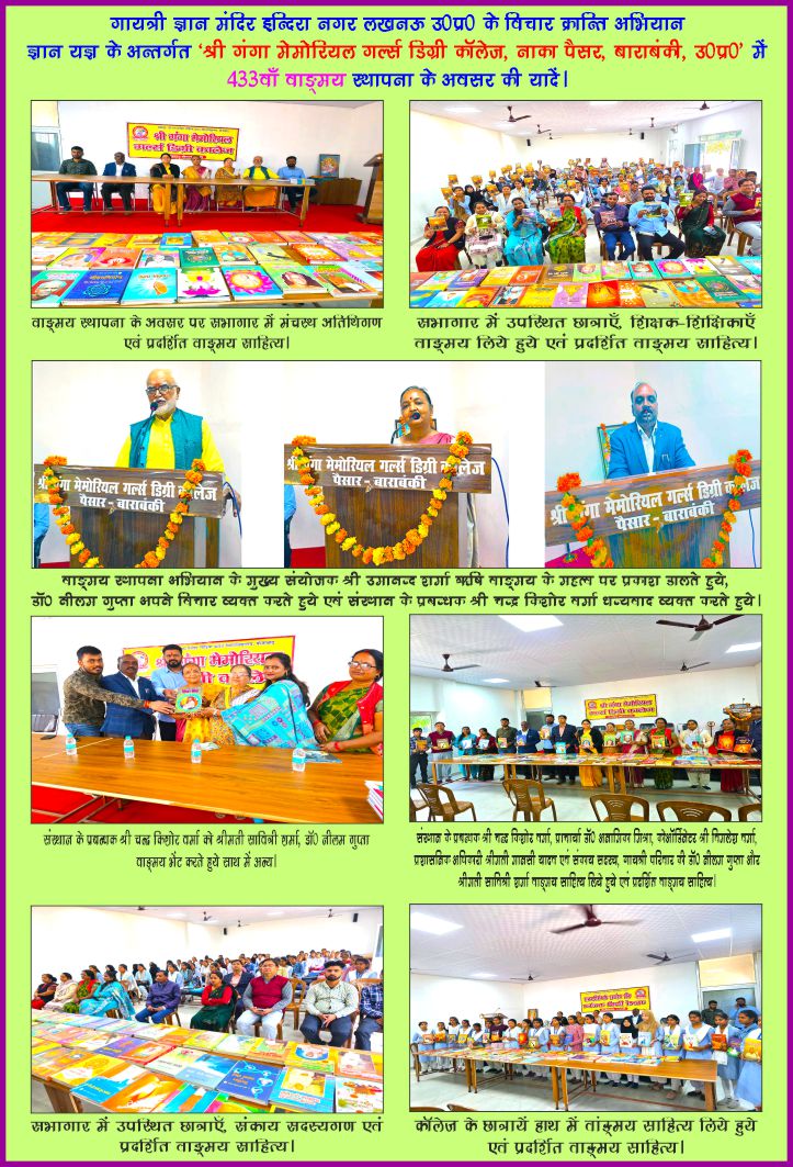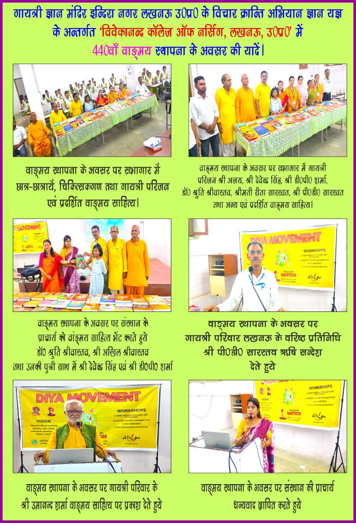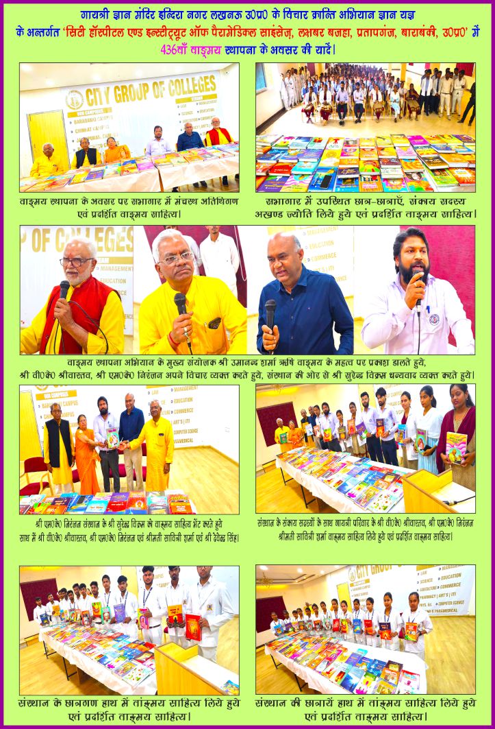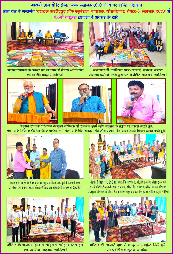 गायत्री ज्ञान मन्दिर, इंदिरा नगर, लखनऊ के विचार क्रान्ति अभियान ज्ञान यज्ञ के अन्तर्गत बलरामपुर गार्डेन लखनऊ में आयोजित राष्ट्रीय पुस्तक मेला (04 सितम्बर से 14 सितम्बर 2025 तक) में गायत्री परिवार के संस्थापक युगऋषि वेदमूर्ति तपोनिष्ठ पं० श्रीराम शर्मा आचार्य द्वारा रचित जीवन उपयोगी साहित्य मेले में प्रदर्शित किया गया। यह गायत्री ज्ञान मन्दिर, इंदिरा नगर, लखनऊ का 36वां पुस्तक मेला था।